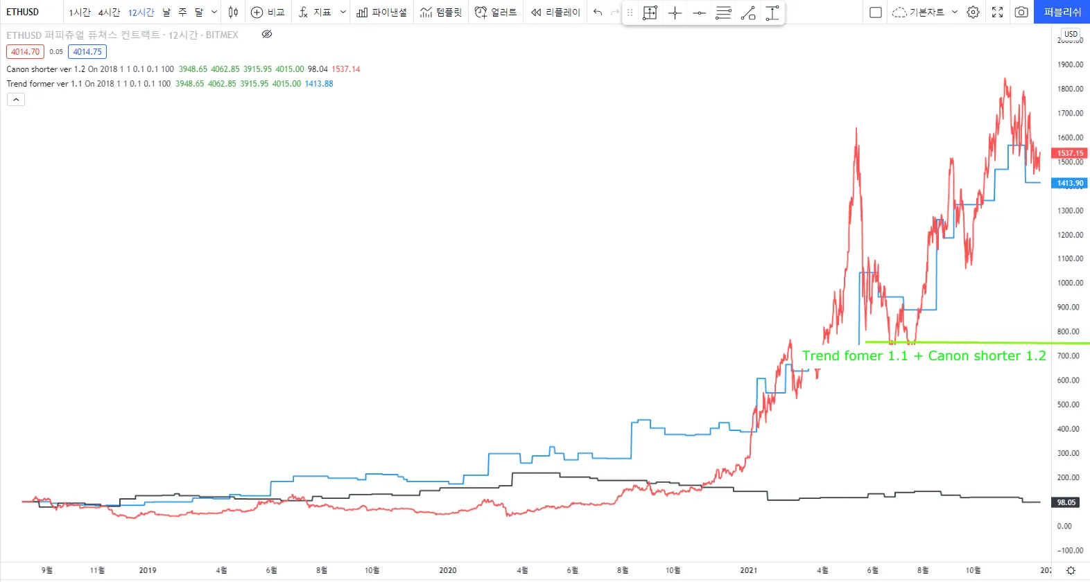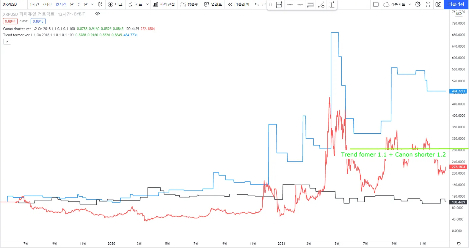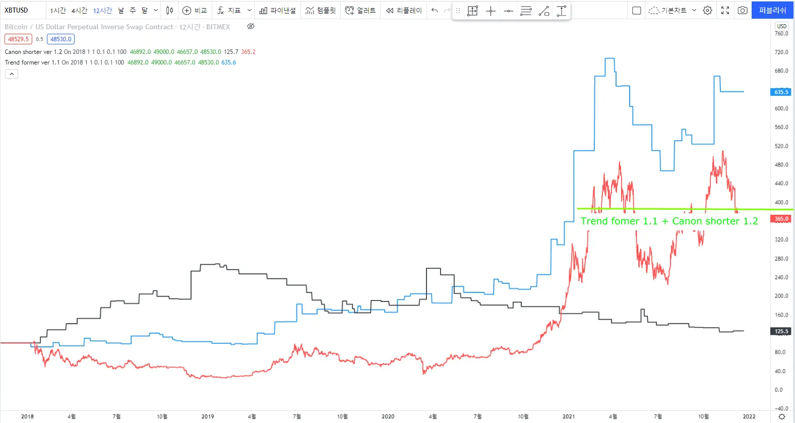 초록선은 Trend former 1.1과 Canon shorter 1.2의 현재 시드를 합한 평균 값입니다.